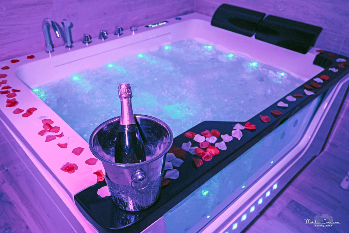 Rendez votre séjour en amoureux unique dans nos suites équipées de spa privatif avec nos options : coffret cadeau sexy, décoration romantique, petit-déjeuner, Champagne et d’autres surprises à découvrir ..